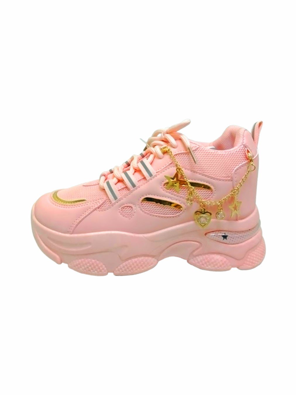 Step into effortless fashion with our Pink Chunky Sneakers, thoughtfully designed for those who value both comfort and style in their everyday footwear. The soft pastel pink color adds a subtle yet elegant touch, making these sneakers easy to pair with casual, streetwear, or smart-casual outfits. A refined golden chain detail enhances the design, giving the shoes a premium